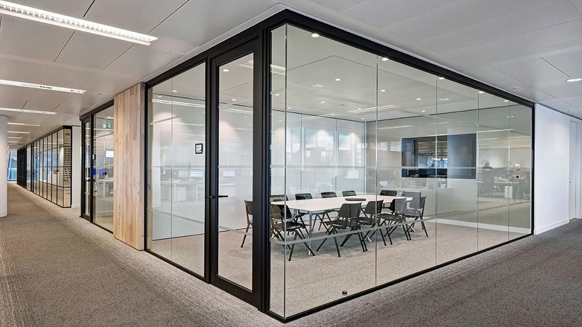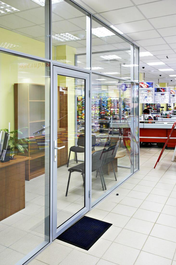 Алюминиевые противопожарные перегородки могут изготавливаться как в полностью остекленном варианте, так и в частично остекленном исполнении. Основное предназначение таких конструкций — это разделение общего помещения на несколько отдельных рабочих зон. При этом преследуется несколько целей: